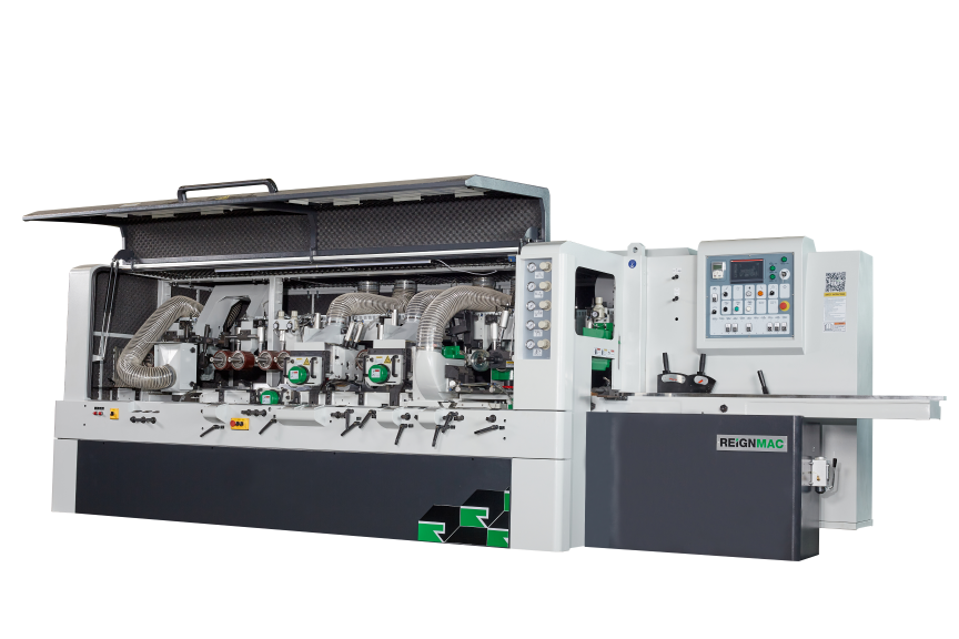 重型万能轴四面刨RMM728U--专业解决: 门套线、户外地板等重切削的加工方案。