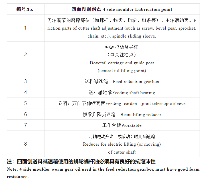 @各位顾客,请接受此四面刨床、双端榫槽机的维护策略。
