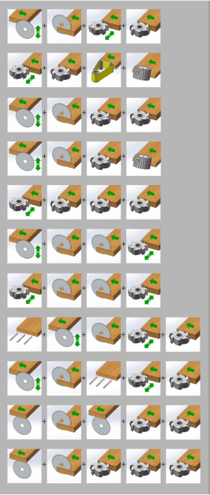 3.各主轴均可旋转,方便实现角截、榫、槽等加工。