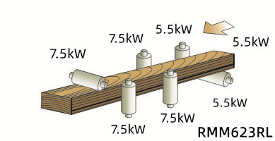 9.气动进料下螺旋辊更适合变形较大、含水量较高的木材进料。
