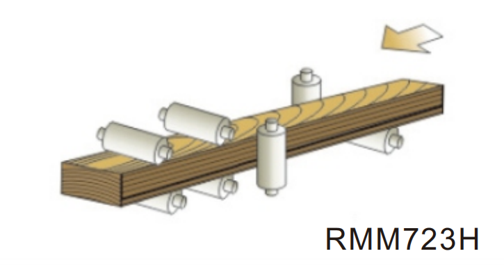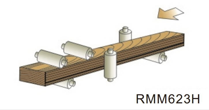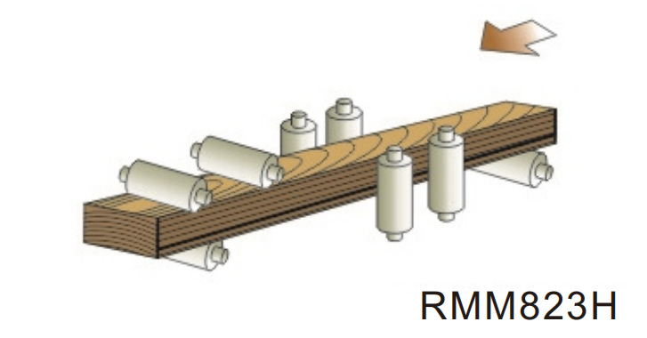 13.气动压紧式送料轮,可分段调整压紧力,有利于厚度不同的木料的送进畅顺。